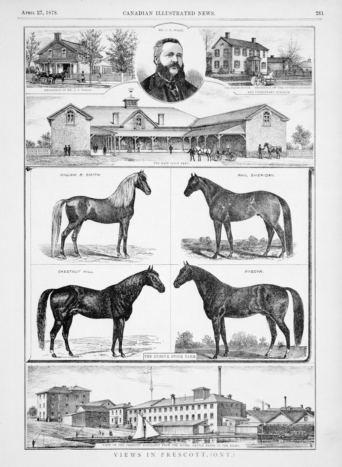 This etching of J. P. Wiser and his Canadian holdings appeared in the April 27, 1878 issue of the Canadian Illustrated News. (Image courtesy Michael Stubbs)