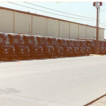 A long row of P600s and P800s is lined along the north side of the Topeka package center in this 1988 photo.