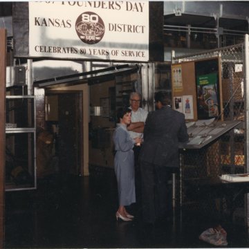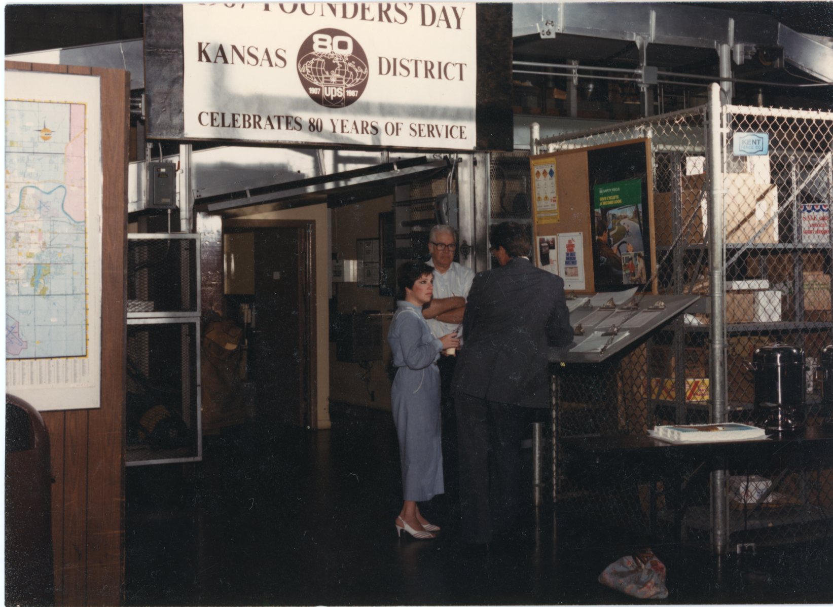 UPS managers and staff prepared for the 1987 Founders’ Day celebration in Topeka, awaiting the arrival of Congressman Jim Slattery.
