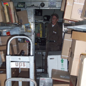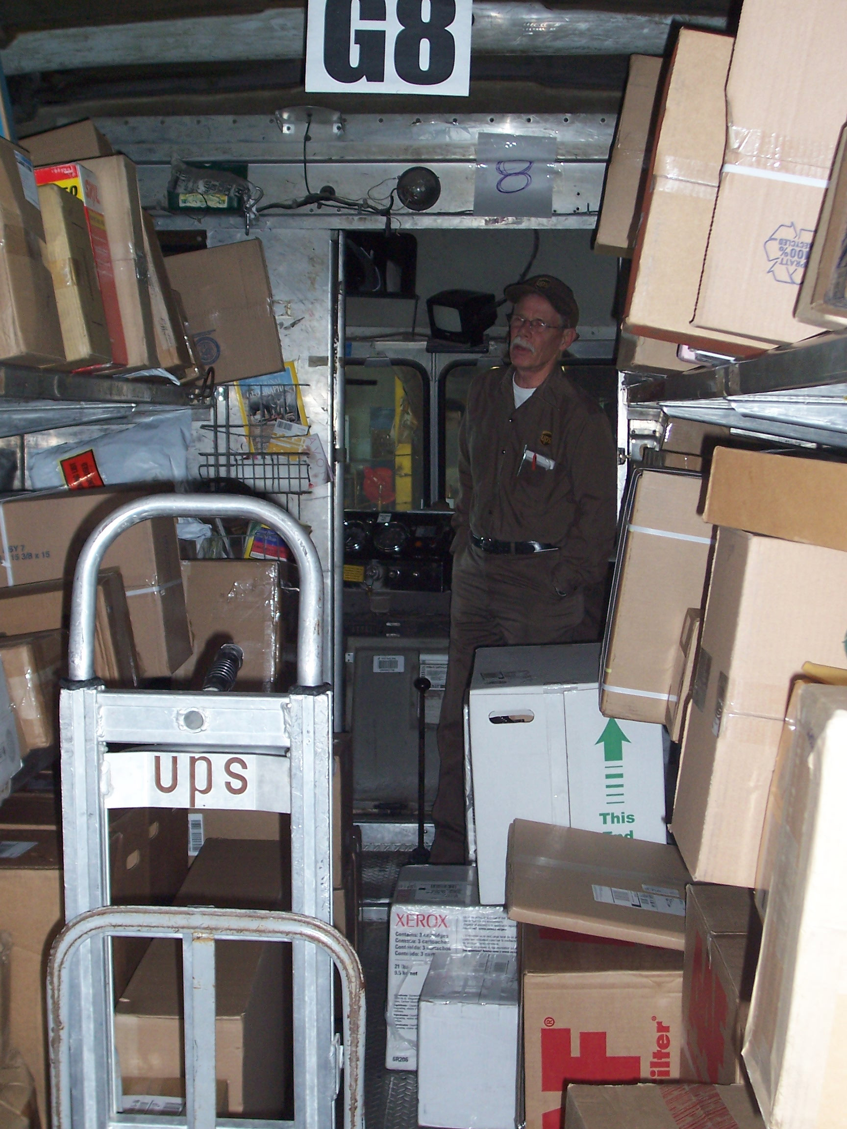 UPS driver Tom Shehi looks at the packages in his load on his last day at work. Even the easy days weren’t easy at UPS.