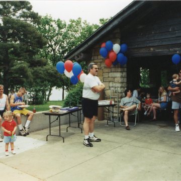 UPS manager Larry Devader speaks to UPS workers and their families at a safety picnic at Lake Shawnee.