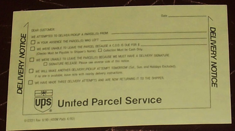 The sticky-note delivery notices, introduced in 1990 were updated to this version in 1993.