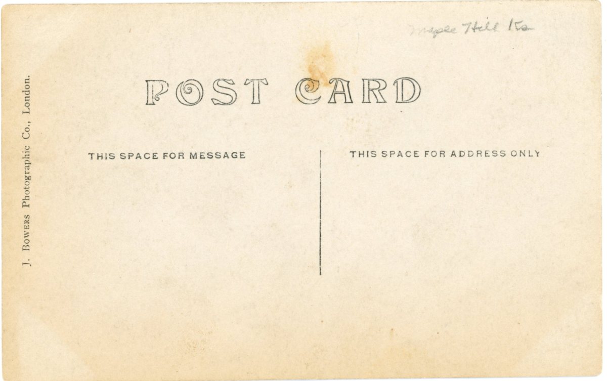John Bowers’ Kansas postcards bore the imprint, J. Bowers Photographic Co., London. on the reverse of the card.