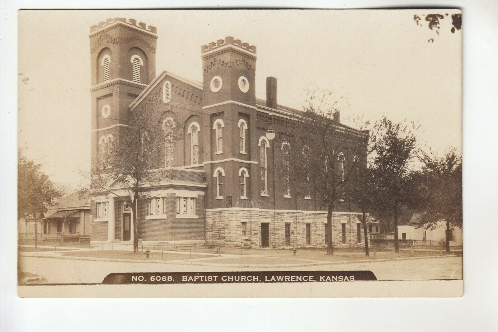 John Bowers took many photos of businesses in Lawrence while operating his business in Topeka. This view of the Baptist Church dates from about 1908.