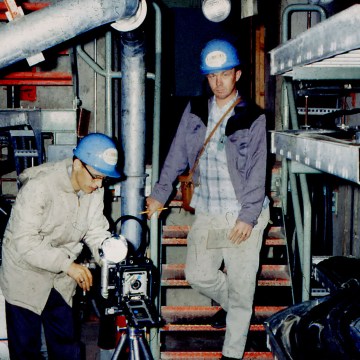 Dave Mathias, left, prepares his camera for a photograph inside a missile silo at Schilling AFB at Salina, Kansas in 1962.