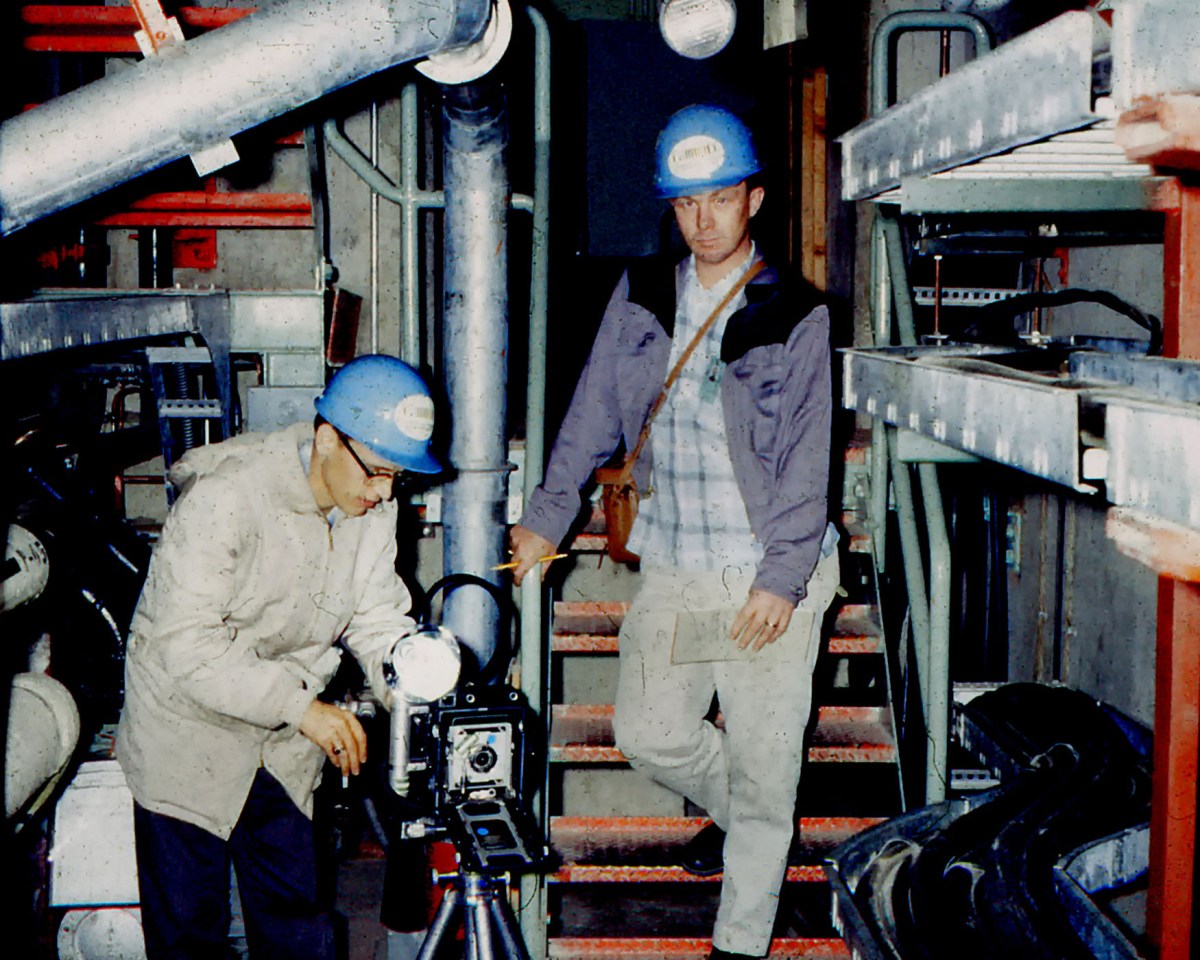 Dave Mathias, left, prepares his camera for a photograph inside a missile silo at Schilling AFB at Salina, Kansas in 1962.