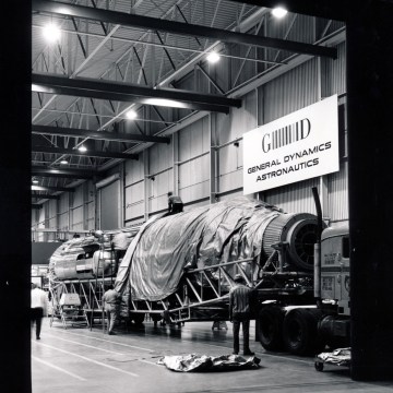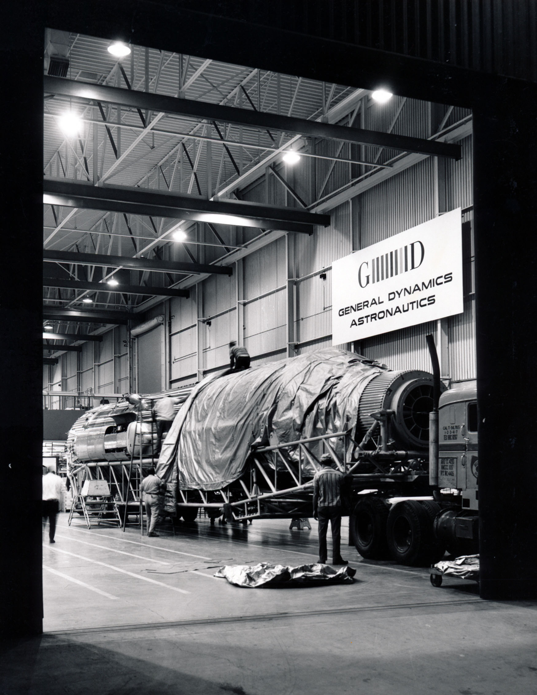 ‘1964–GDA–SAN DIEGO–PREPARING THE ATLAS MISSILE FOR SHIPPING’