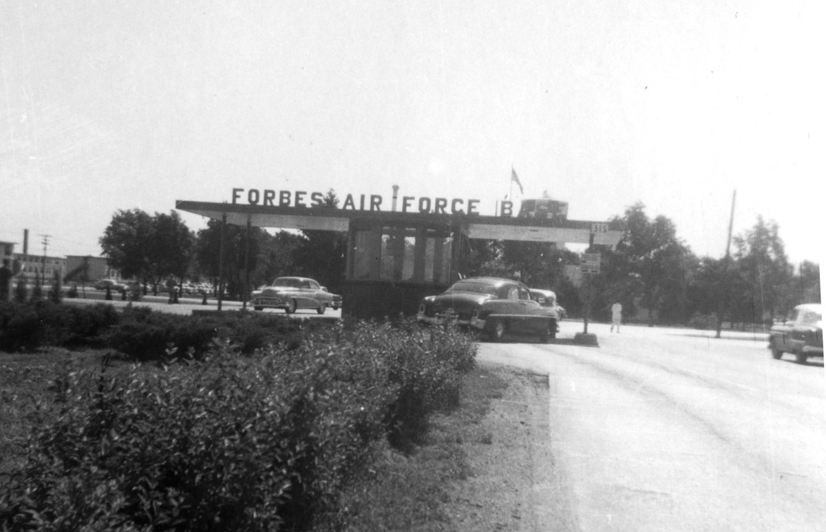 This view of the front gate of Forbes Air Force Base dates from the middle-1950s.