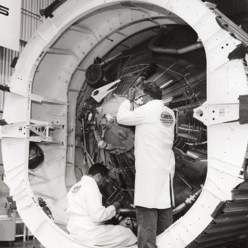 ‘SAN DIEGO—2 MEN WORKING ON ATLAS AT GD ASTRONAUTICS–1964’