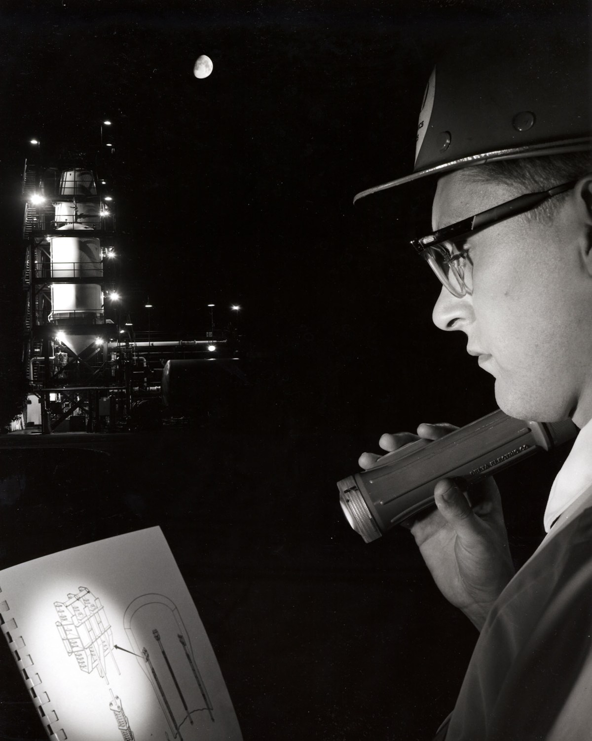 ‘SAN DIEGO—TEST ENGINEER CHECKING SPECK MANUAL DURING TESTS–1964’