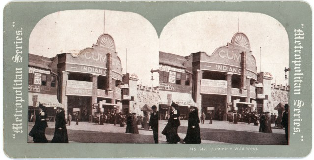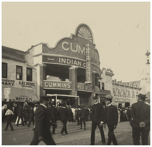 The Frederick Cummins Wild West Indian Congress and Rough Riders of the World building had an entrance on The Pike at the St. Louis World’s Fair.