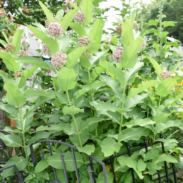 Common Milkweed produces large clusters of flowers and broad leaves which provide a habitat for Monarch butterflies.