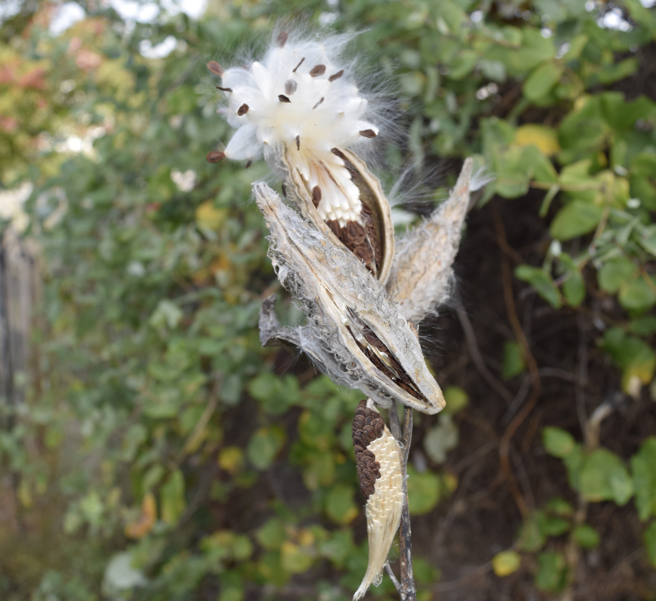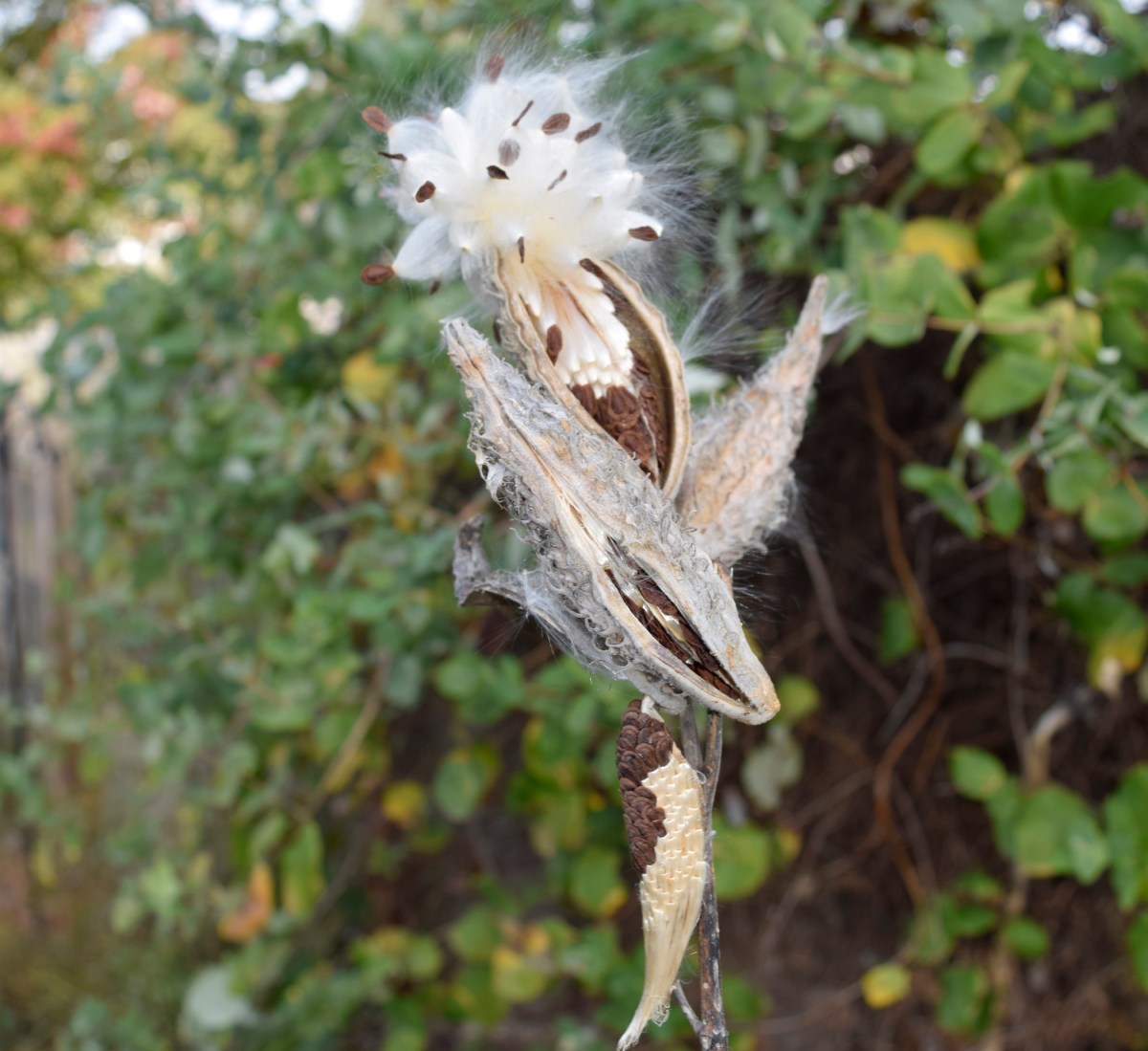 By mid-October, the Common Milkweed seed pods have burst open, scattering their seeds in the Kansas wind.