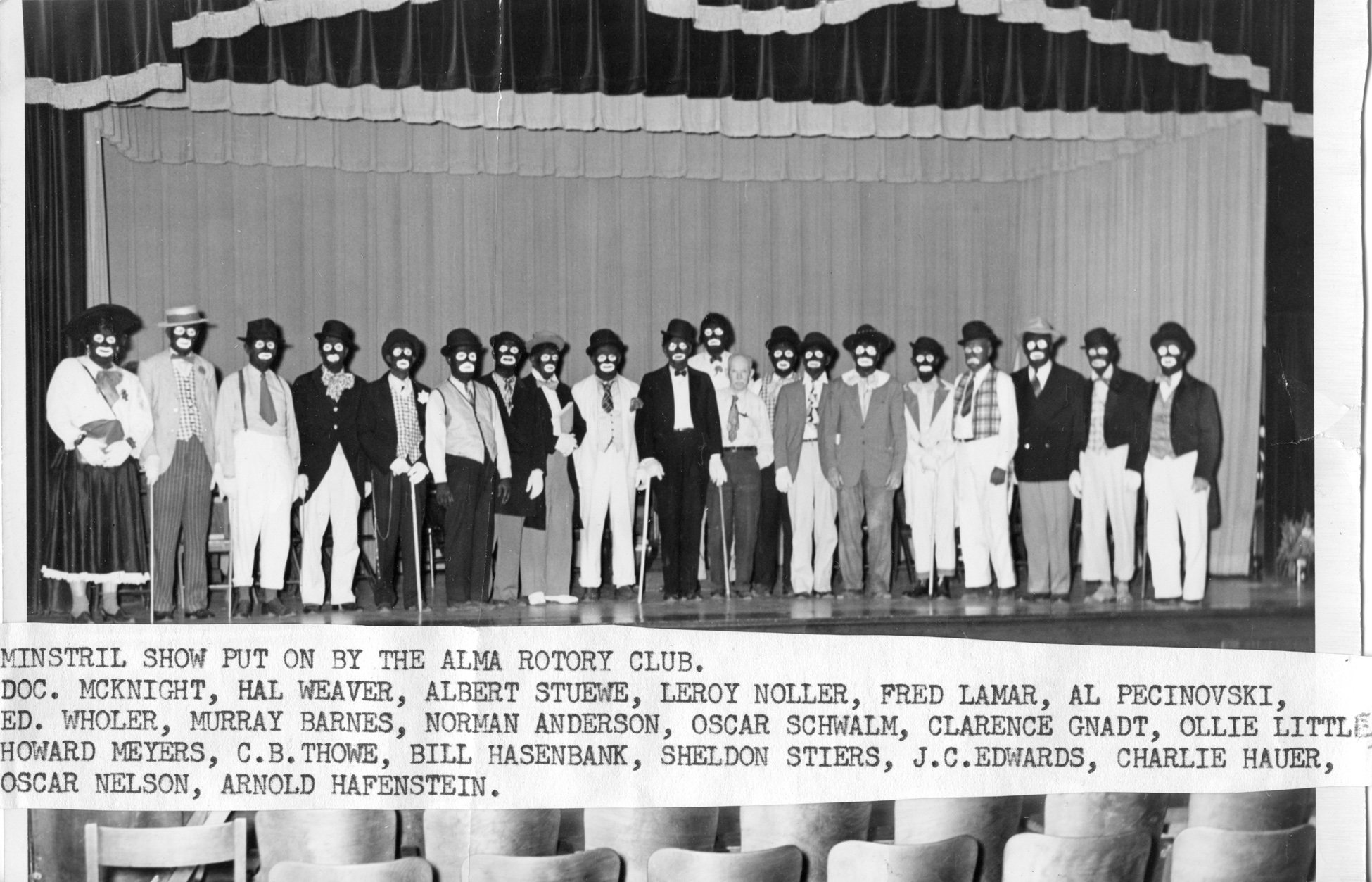 This minstrel show, performed by the Rotary Club of Alma dates from the 1940s.