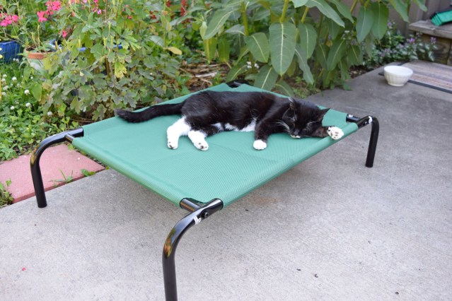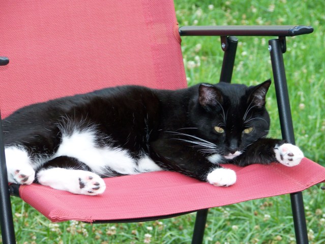 We had converted our backyard to a butterfly garden containing thousands of nectar-producing flowers and butterfly host plants. One of Baby’s most favorite activities was to spend time lying on our patio while we worked in the garden.  She would often nap for hours on the warm, sunny days.  None of the cats cherished the opportunity to lie in a lawn chair on the patio like Baby did.  It was one of the great pleasures in which she indulged herself in Baby’s life-quest to be next to us.