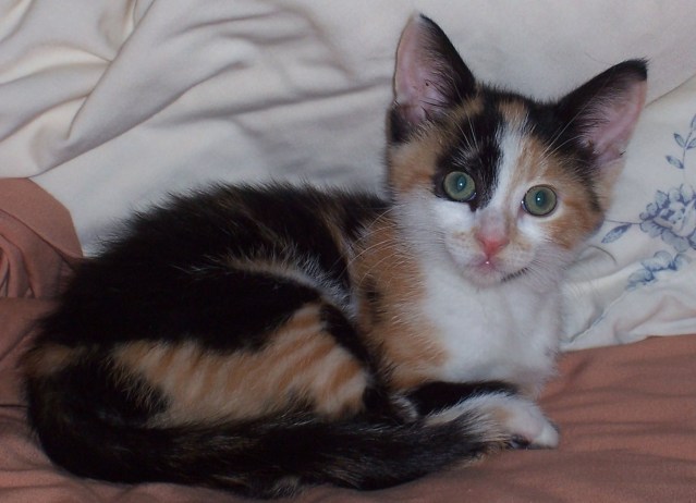 My wife, Cheryl, had not enjoyed such a longstanding relationship with cats, and, in fact, she had a mild allergy to them. Things would change in 2007 when a family friend found an abandoned four-week-old calico kitten at their home, and Cheryl agreed to take the helpless waif and find a home for it. Once she had brought the tiny multi-colored kitten home and began feeding it, both my wife and I became very attached to the little cat.