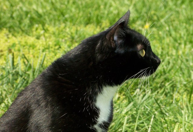 In the early days of July, 2010, Cheryl casually mentioned that she had been shopping at Pet Smart, and that they had the most beautiful and sweet cat available for adoption.  I asked her what the cat looked like, how old it was, and if she knew any details about it.  She said that it was no kitten, but an eight-year old adult female cat.  She added that it had the most beautiful sleek black and white coat, the markings of a tuxedo.  She quickly added that the cat was incredibly sweet and would sit in her lap to be petted for as long as Cheryl allowed.  As a postscript, she noted that the shelter had placed a sign on the cat’s cage, saying that she did not get along with other cats.