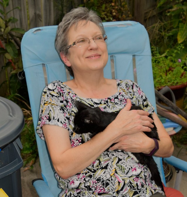 It wasn’t that Baby ignored Cheryl.  She loved being on Cheryl’s lap for grooming, and during the time she lived with us, Baby spent literally thousands of hours seated on Cheryl’s lap for grooming.  She would watch and wait for Cheryl to sit in a very specific chair where she groomed the cat’s beautiful sleek fur with a cat brush.  If Cheryl wasn’t ready to brush Baby, she would curl herself into a ball in my wife’s lap, immediately falling asleep, patiently waiting her time for grooming.  I often commented that Baby was really a “Mama’s girl.”  The truth was that the adopted cat focused all of her time on us.