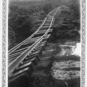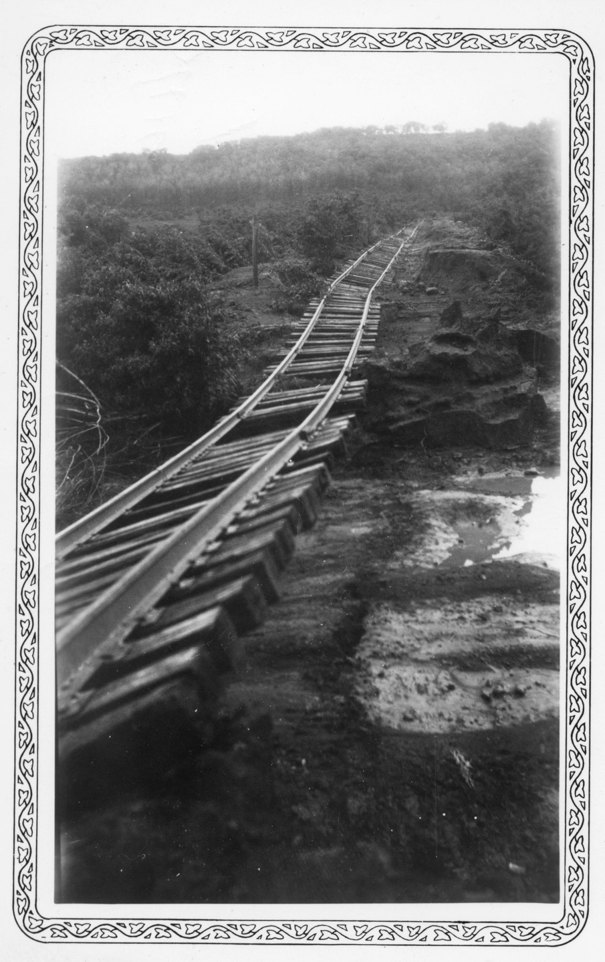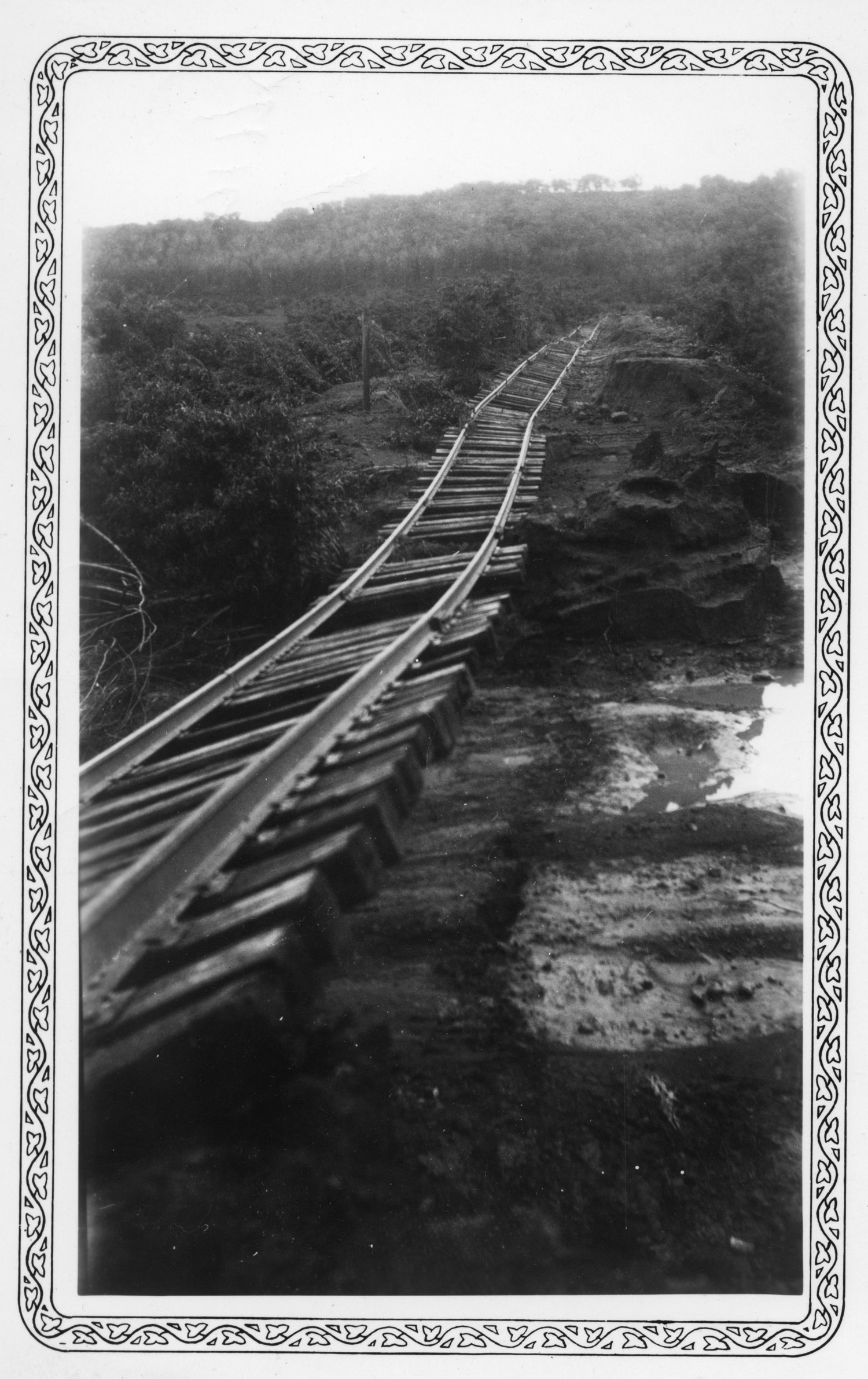 Atchison, Topeka & Santa Fe tracks outside of Alma, Kansas show considerable damage after flooding in 1936.