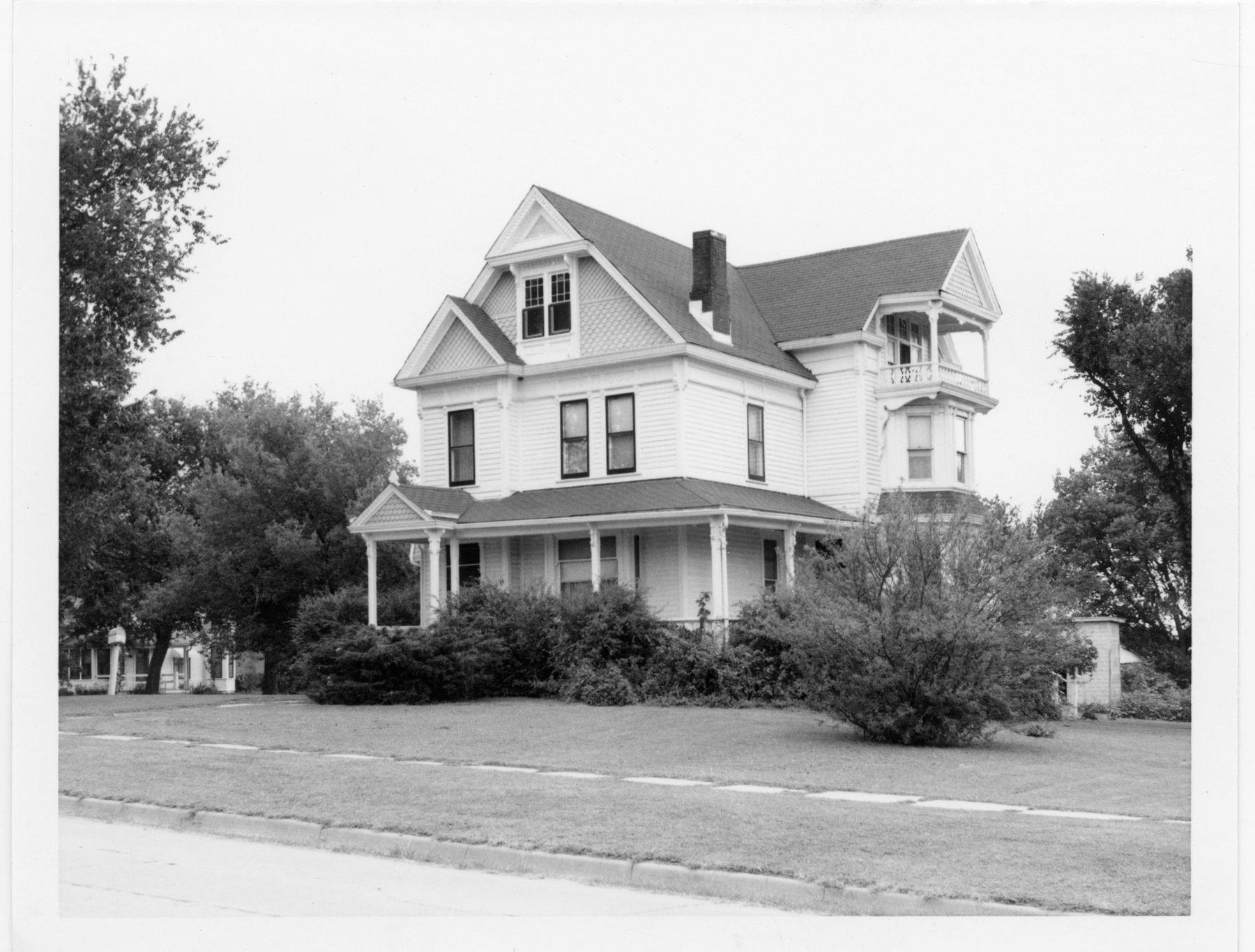 This was the home of Dr. and Mrs. Coffey of Eskridge, Kansas when Dean Dunn photographed it around 1960. The house, located on West 2nd Avenue, was built in the late 1880s for John Clark.