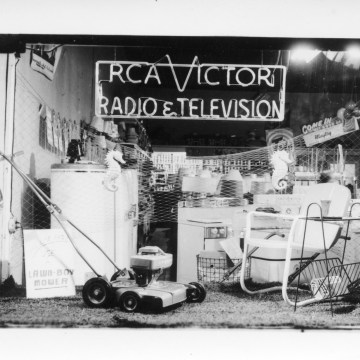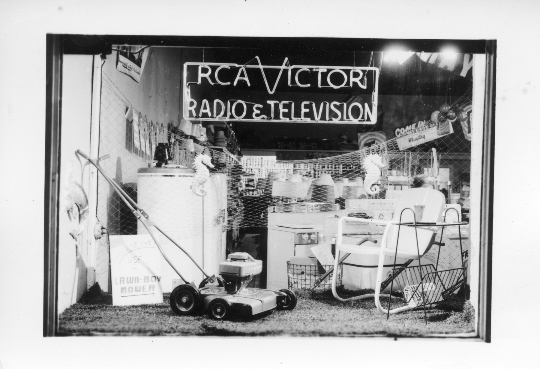 Dean Dunn photographed this night view of the display window at Dunn Home Supply in the early 1950s.