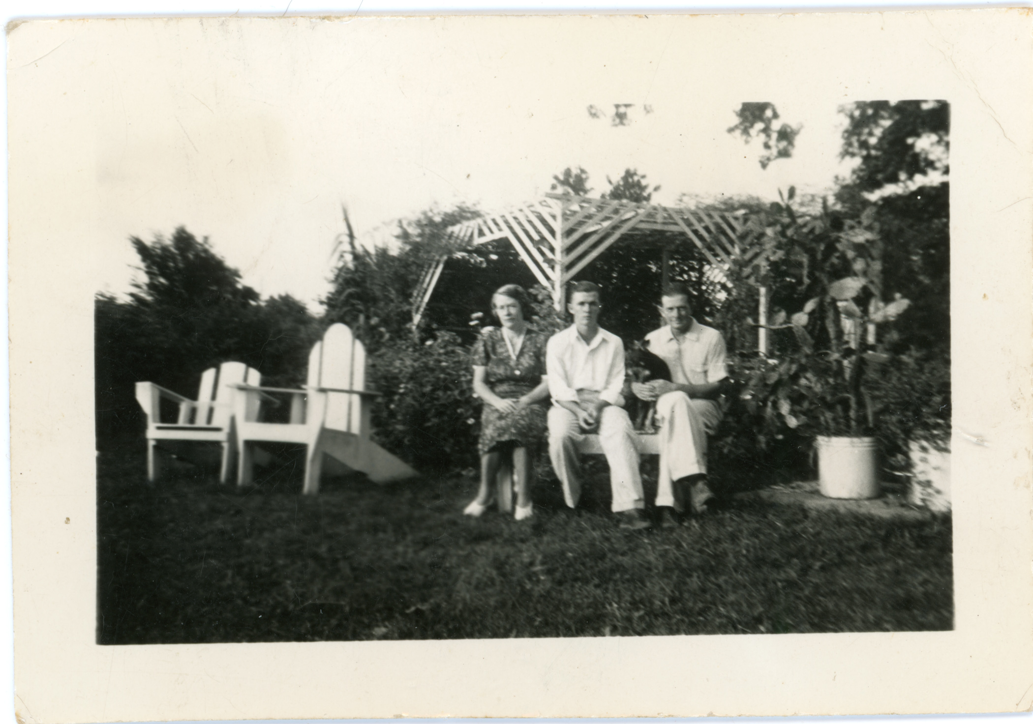 Carl F. Hoots, center, sits with his mother, Marjorie and father, Carl E. Hoots at their home in West Plains, 1939.