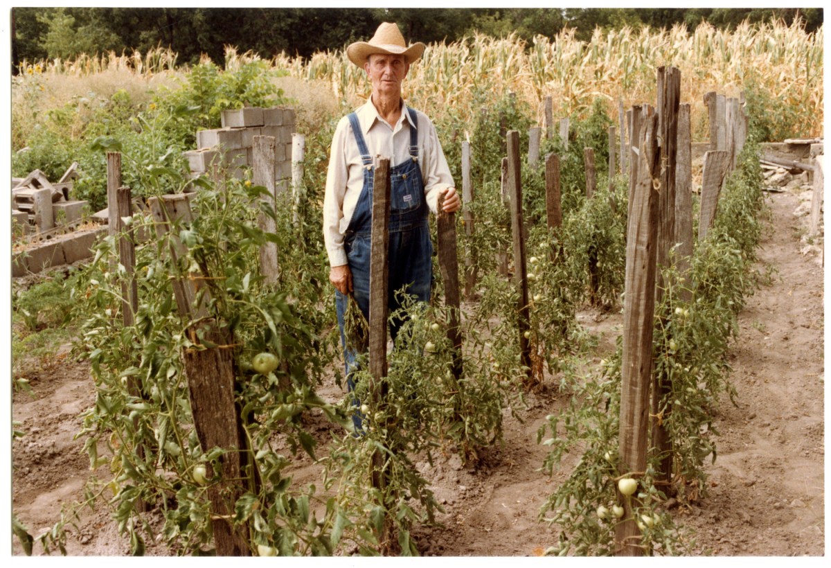 Edgar “Slim” Sargent stands in his garden at his Dover, Kansas home in the summer of 1984.