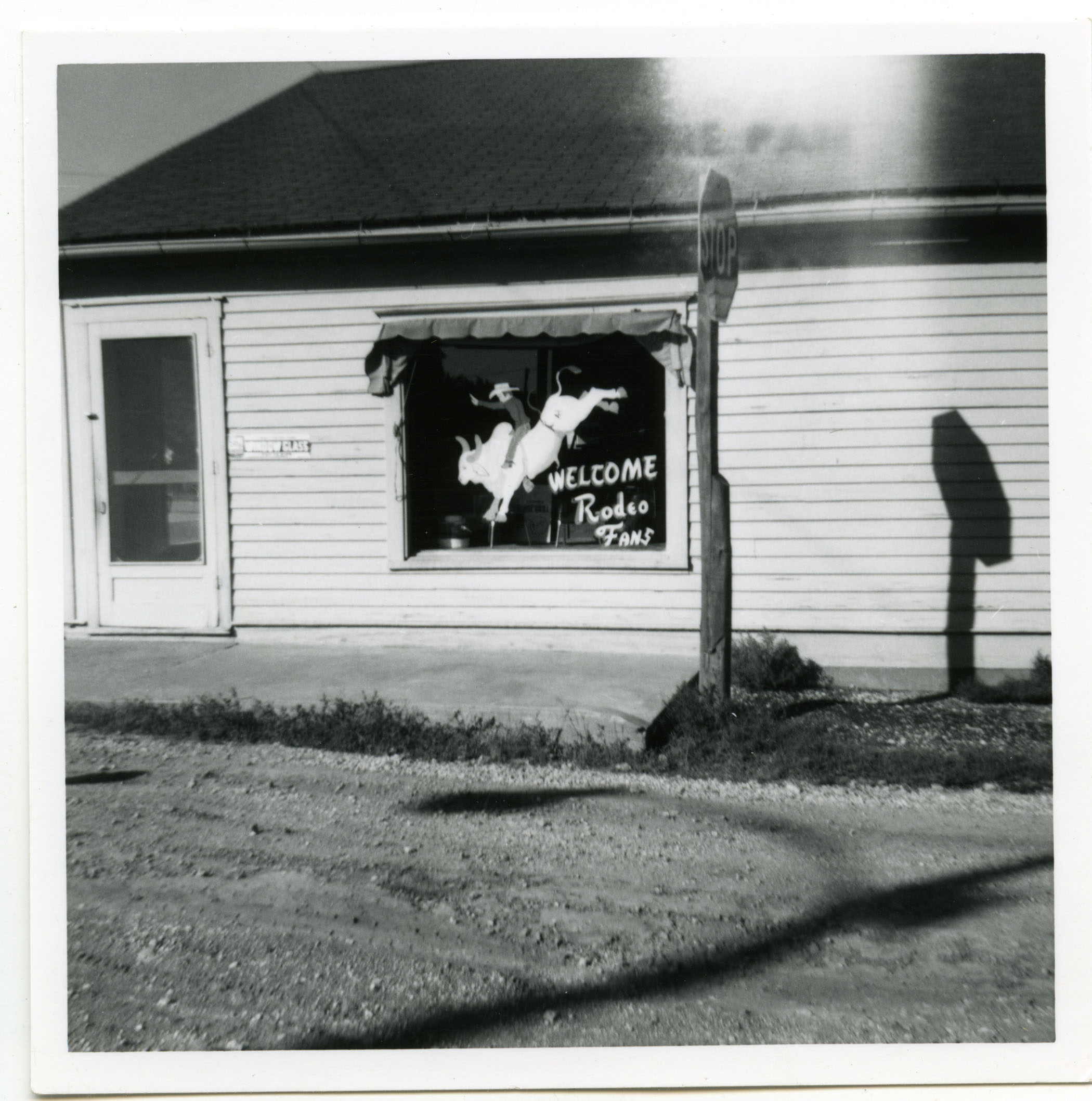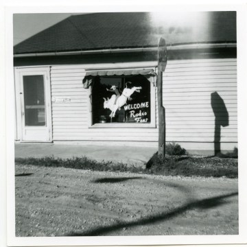 The front window of the Eskridge Lumber Company was painted with a welcome sign for visitors to the Eskridge Labor Day Rodeo.