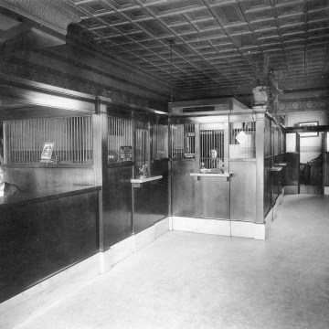 This view of the interior of the Eskridge State bank was taken in the 1920s. Identified standing at left is B.C. Taylor, cashier; seated, W.T. Echols, President; and Mary Echles, bookkeeper, standing at the window. Photo courtesy Russell and Arlene Taylor.