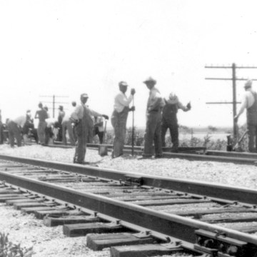 Section crew members line the tracks near McFarland, Kansas.